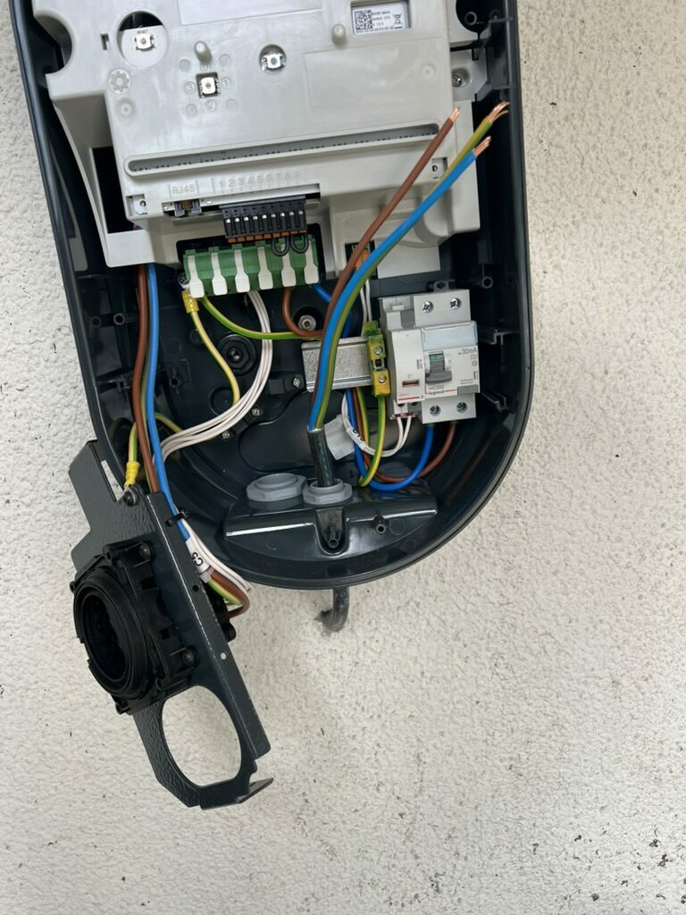 Le client a un besoin pour une borne de recharge éléctrique. Je lui propose la borne de chez Legrand la green'up Home en mode M3 7,4kW 32A